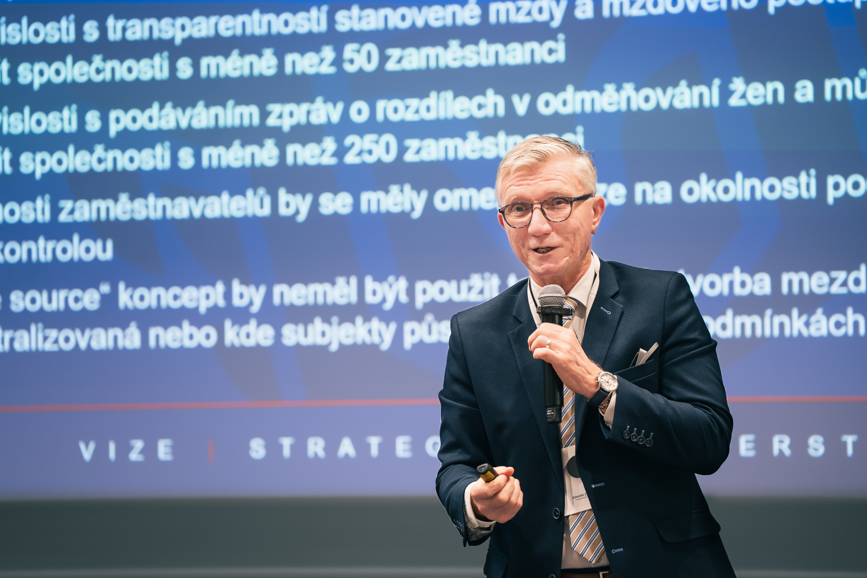 Konference proběhla pod záštitou Hospodářské komory ČR, což svým vystoupením potvrdili Zdeněk Zajíček (Prezident HK) a Jana Havrdová (Vice-prezidentka HK). Nejde pouze o formální akt: CBA! se koncem léta stala členem HK, což znamená, že naši expertízu v oblasti odměňování zpřístupníme všem členům HK a tím pomůžeme soukromému sektoru se lépe připravit na příchod směrnice EUPTD. Zároveň dostáváme od HK jednoznačný úkol: podpořit jednání soukromého sektoru o nadcházející legislativě tvrdými daty, čísly a fakty, namísto dohadů a emocí. S tímto zadáním také Jana Havrdová zakončila dopolední panelovou diskusi.